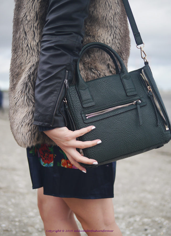 Fur vest and floral mini