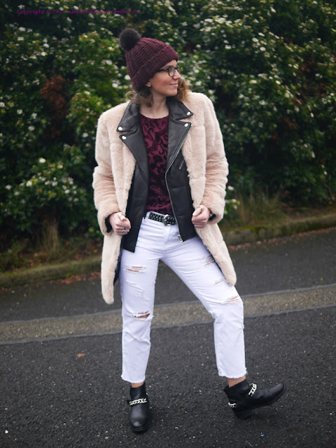Fur Jacket, Jeans, Belt and Ankle boots
